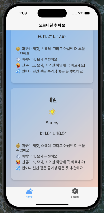 1) 앱을 켜자마자 아무것도 안해도 자동으로 현 위치 잡아 바로 옷 추천을 볼 수 있도록 구현했다.